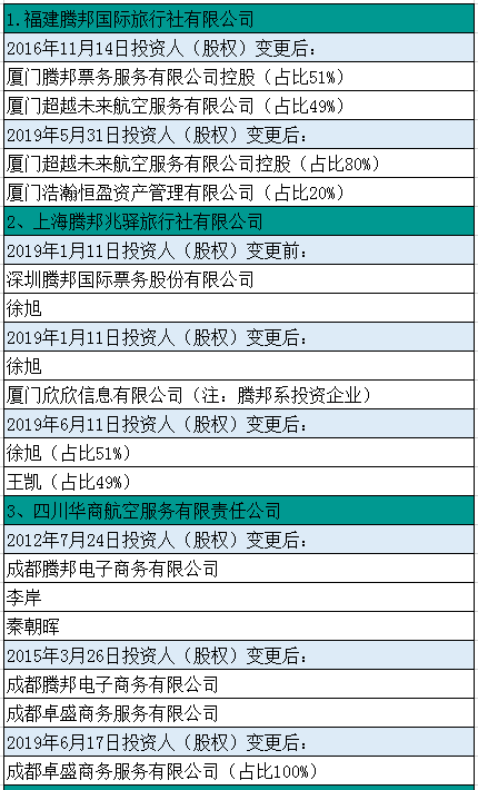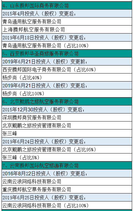 由于腾邦系是从机票代理起家,所以上述投资企业中,很多都是当地有名的大机票代理商或者平台,尤其是云南腾邦国际航空旅游有限公司,在未脱离腾邦系之前,一直是关联机票代理企业中业绩最好的一家。