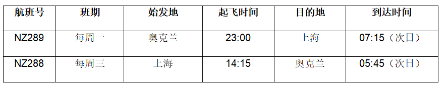新西兰航空重启中新航线客运服务,旨在缓解滞留海外的华人、两国商贸人士等旅客的迫切出行需求。具体航班计划如下: