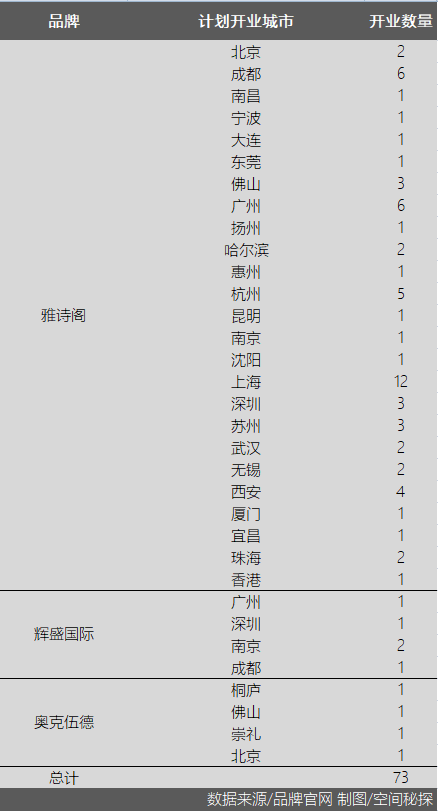 通过对雅诗阁、奥克伍德、辉盛这几家头部服务式公寓开业计划的梳理,空间秘探发现,在几家品牌的开业计划中,未来预计有73家新开业服务式公寓,其中有46家坐落于非一线城市,占总数的63%,可见对下沉市场之重视。而如果再细看这些服务式公寓品牌的已开业门店,不难发现,国际服务式公寓在不少二三线城市早有布局。下沉,已在无声中呐喊。