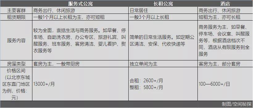 国内目前对于服务式公寓的概念,大多是混沌模糊的。除了名称的混乱外,不难发现,市面上不少研究报告,都将服务式公寓归类到长租公寓中,与龙湖冠寓、万科泊寓等针对年轻人的“白领公寓”竞争市场排名。这样的排名显然并不科学,服务式公寓与国内近两年火热的长租公寓,是截然不同的物种。