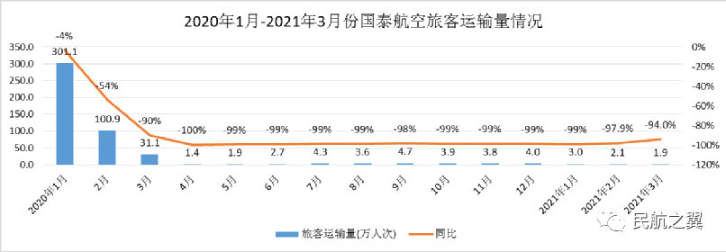 2021年3月份,国泰航空旅客运输量1.85万人,只有正常年份不到1%。