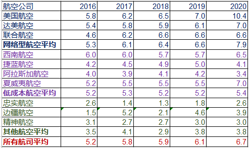 其中最高的美国航空公司是10.6万美元,最低的忠实航空只有2.6万美金。
