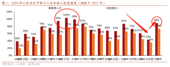 关键数据1:2023年春节国内游人次,恢复至2019年同期的89%