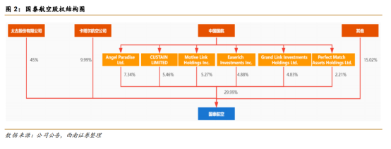 再次,国泰航空的第二大股东是国航,持有公司29.99%的股份;同时国泰航空也通过交叉持股的方式,持有国航18.13%的股份。