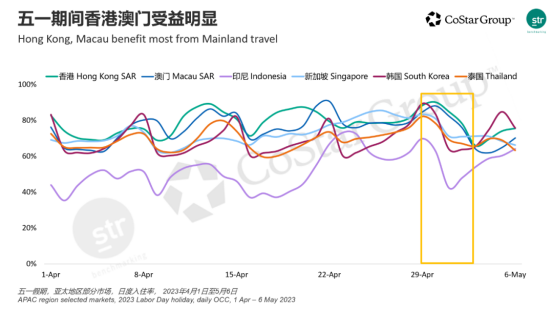 从酒店入住率来看,五一假日效应对港澳市场的提振作用,明显高于东南亚地区。这里的一个推测是,中国出境游开放之后,吃到了最大红利的就是香港。