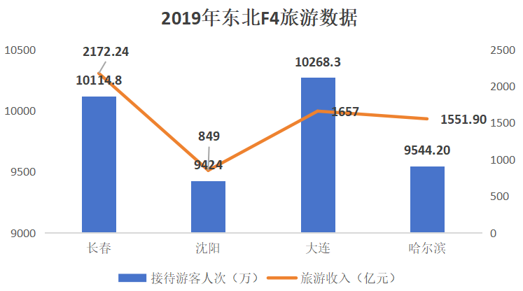 从国内游客接待量来看,东北F4整体实力相当,只不过长春和大连率先突破1亿人次门槛,长春比大连仅少100万人次左右,差距不明显。