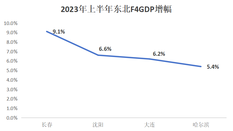 2023年上半年,东北F4的GDP及增幅表现显示: