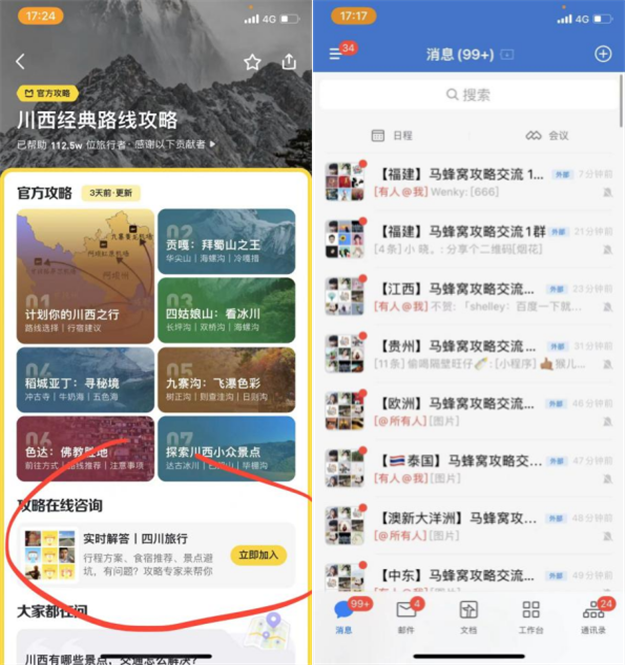 小虎把困惑的问题发到中东攻略群,不到一分钟,就收到群主和群友同时回复,明确告诉他,这个地方买Iphone15性价比一点也不高,并且详细讲明原因到底是什么;有群友在甘肃攻略群提问西北大环线上一些小众景点是否可以探险时,有群友直接发出自己亲身经历和照片,提醒哪几个地方危险系数太高,自己半条命到搭进去了;有群友在澳大利亚攻略群里提问当地攻略,有群友直言自己旅居当地15年,有问题尽管 他……