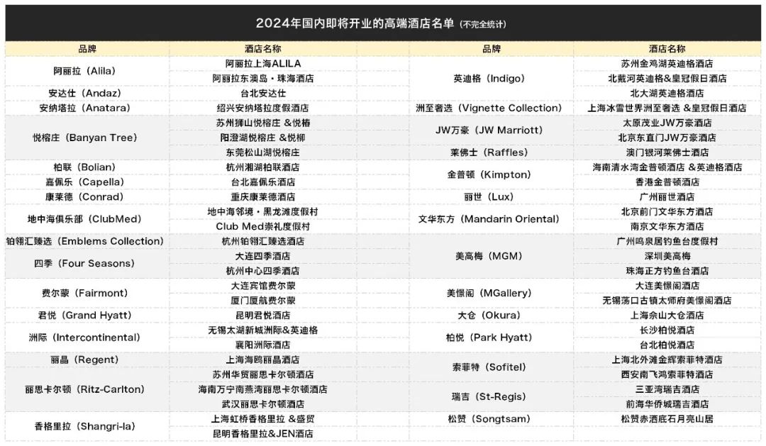 有意思的是,空间秘探在统计2024年将要开业的高端酒店名单时,并未见到“丽江”这个城市的踪迹。如希尔顿酒店集团旗下多个品牌将首次进驻至香港、重庆、桂林等热门目的地;2024年悦榕集团10家新开业酒店分布在东莞、苏州、大连、珠海、长春、台州、腾冲各1家,苏州独占4家;还有万豪、凯悦、雅高等头部酒店集团今年即将开业的高端酒店都无一“避开”了丽江。