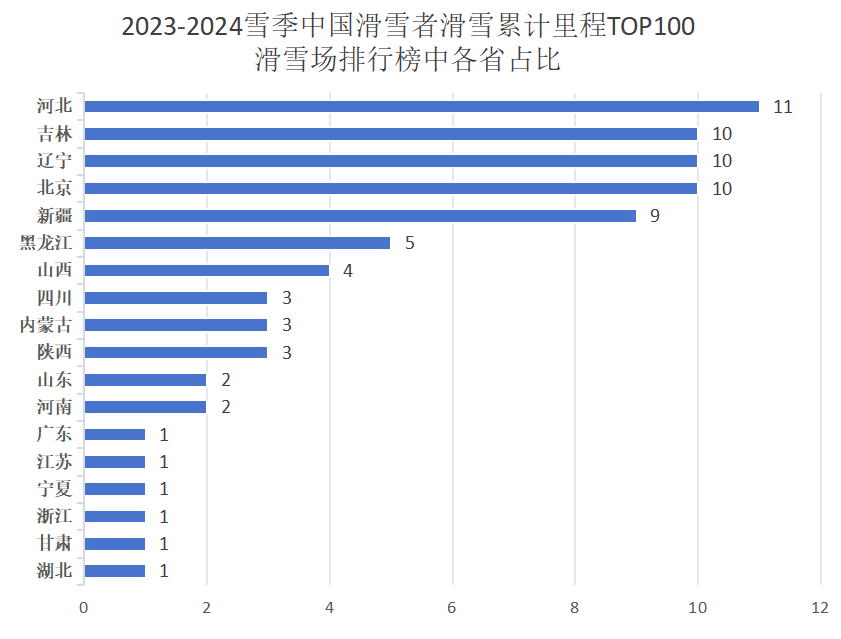 每个滑雪季哪些省份的哪些滑雪场最受热捧,国内滑雪发烧友的滑雪里程数据是最具说服力的指标之一。尽管这一群体在滑雪总人口中占比只有1%左右,但由于滑雪发烧友对滑雪软硬件方面的严苛要求,使得他们的大数据统计具有很高含金量。