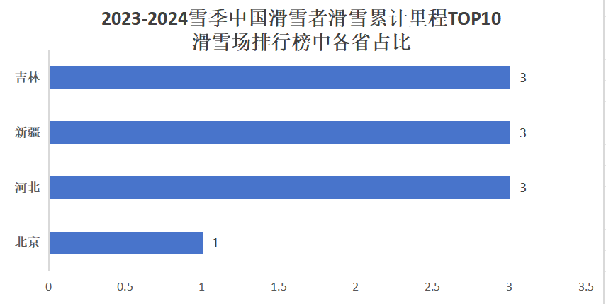 如果我们进一步聚焦TOP10榜单可以发现,吉林、河北和新疆各有三家滑雪场入围,由此不难发现,这三个省共同把持国内顶尖滑雪场头部阵营。