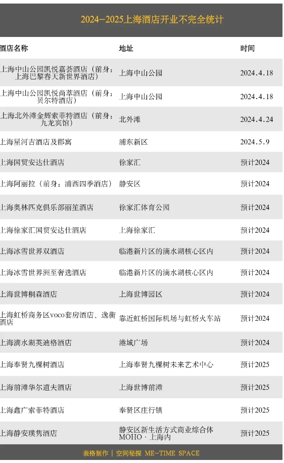 根据下表可以详细预览上海2024-2025新开业酒店状况。值得注意的是,在今年开业的酒店当中,多家酒店为存量资产改造,换牌挂新。