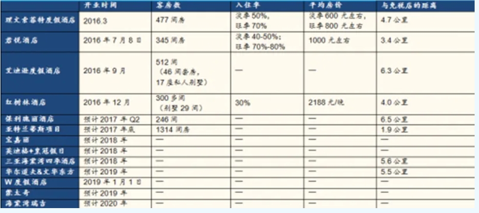 三亚海棠湾片区2016年-2020年新增的高端酒店