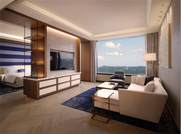 山岳厅则是中型宴会厅,装饰设计无不彰显精致和品味。根据活动类型差异,厅内可分为5个区域,容纳40至850位宾客。临近山岳厅的小型宴会室溪谷厅适合举办小型会议和活动、VIP会议或工作坊;岛屿厅配备独立的会议空间,是宾客私人沟通和亲密聚会的理想选择,同时由于它位于商务中心附近,可为与会者提供专业的商务支持和轻松便利的秘书服务;海洋厅、河川厅和湖泊厅的四周环绕着4米高的落地玻璃窗,可以让宾客在商务活动的同时沐浴阳光,营造自然的舒适氛围。