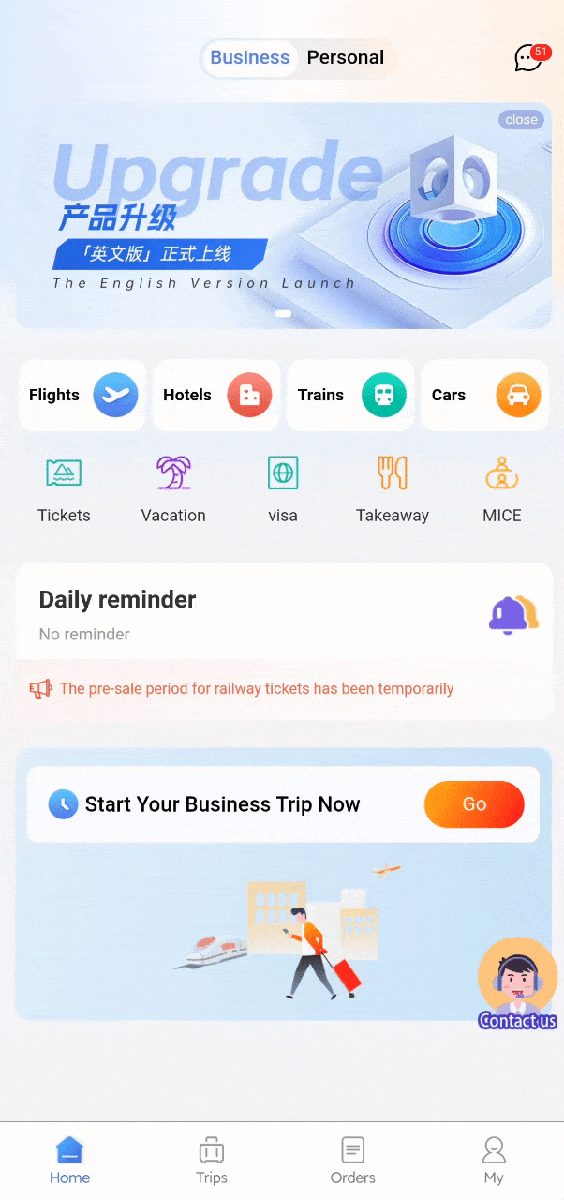 针对跨国公司员工的差异化差旅需求,同程商旅英文版从界面展示到操作细节均作了多层次深度适配。平台的因公差旅模块和因私出行需求场景均支持全英文操作,非中文母语用户无论是处理商务行程,还是安排个人度假,都能通过同程商旅英文版“一站式”预订。另外,英文版实现了APP、小程序、H5页面等多端口的全覆盖,与中文版的功能体验保持一致,用户可以随时随地在多端实现中文版与英文版之间的无缝切换。