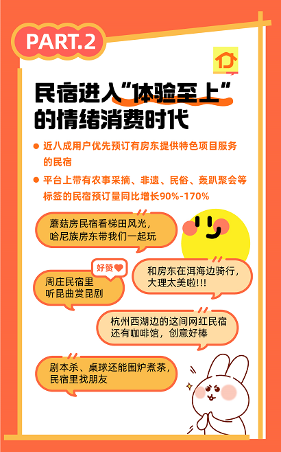 相比于过去仅基于价格、地理位置等理性因素预订,2024年用户更倾向于为“体验”买单,民宿行业正逐步迈入情绪消费时代。