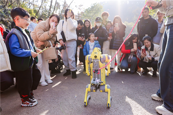 前沿智能科技与贵州特色文旅资源融合的“AI BOT巡游”为身处淡季的贵州旅游市场带来了一抹亮色。以年轻游客和亲子家庭为代表的客群在机器狗的吸引下纷纷驻足观看并积极参与互动。充满科技元素和新奇体验的环节吸引他们拍照分享,让巡游首站黔灵山成为2025年贵州第一个出圈景点,后续活动目的地也成为他们咨询和关注的目标。