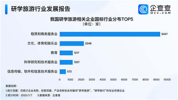 企查查数据显示,我国现存1.64万家研学旅游相关企业。成立年限上,我国研学旅游领域多为老牌企业,过半数成立超5年;行业分布上,归属租赁和商务服务业的企业最多,占比近六成;注册资本区间分布上,我国研学旅游行业超七成企业注册资本在500万元以内。