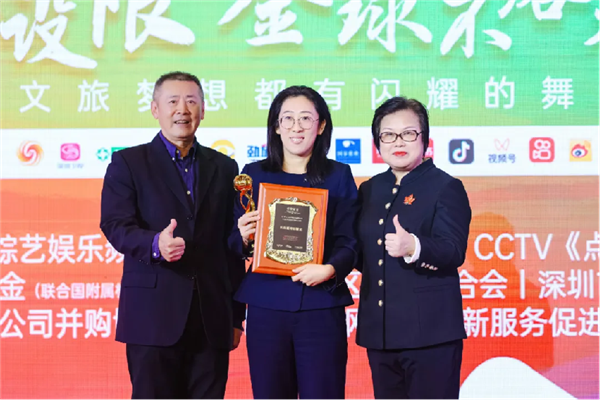 原国家旅游局监督管理司司长彭志凯和粤港澳大湾区商业联合会总会主席朱新兰,作为评委代表共同登台为玛尔斯星球想象力工程院陈冬平先生、湖南天门郡控股集团股份有限公司刘超先生、深圳市风发科技发展有限公司王舒女士三位获奖者颁奖。