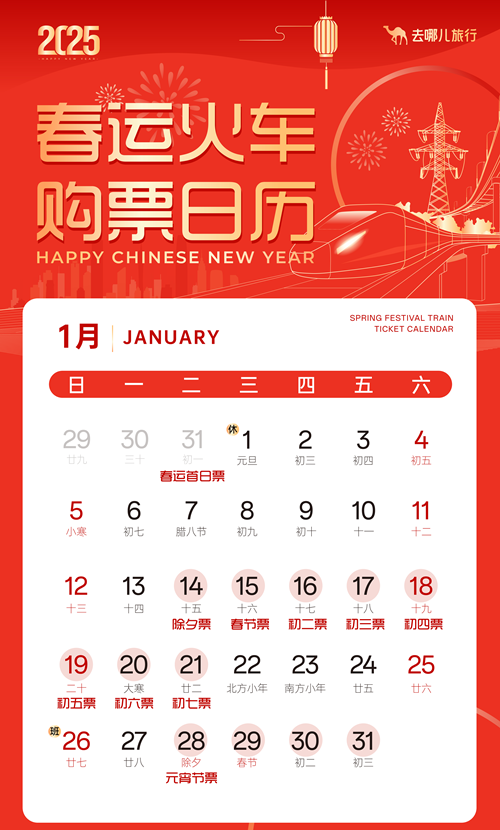 去哪儿建议,尚未买到火车票的旅客可以以中转代替直达,或者利用坐飞机+坐火车,或者坐火车+大巴等联运方式返乡。乘坐飞机的旅客,若直飞航班售罄或价格较贵,可考虑飞到临近城市,再转乘火车、汽车等短途交通方式。此外,还有一些车次将在提前7天时发售,一些短途车次也有望在临近发车时有余票放出,建议旅客关注车票信息。