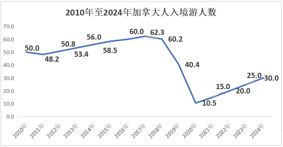 根据中国国家旅游局和相关统计机构的数据,以下是2010年至2024年加拿大人入境游人数的统计情况及分析: