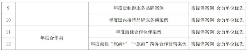 12、年度最佳“旅游+”“+旅游”跨界合作营销案例标准: