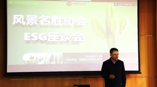 文化和旅游部质量监督管理所所长、全国旅游标准化技术委员会秘书长刘建明,首都经济贸易大学中国ESG研究院副理事长赵喜玲,以及中国风景名胜区协会常务副秘书长赵旭伟分别致辞,表达了对本次座谈会的高度重视和对风景名胜区ESG及可持续发展的美好期许,以及未来在风景名胜区、文旅行业ESG领域合作的可能性及合作方式。首都经济贸易大学中国ESG研究院副院长王凯教授发表了主题为“ESG理念及行业应用实践”的主旨演讲,深入剖析了发展ESG的重大战略意义及面临的主要问题,指出了ESG未来发展趋势,并全面介绍了首都经济贸易大学中国ESG研究院在各个行业领域的应用实践。