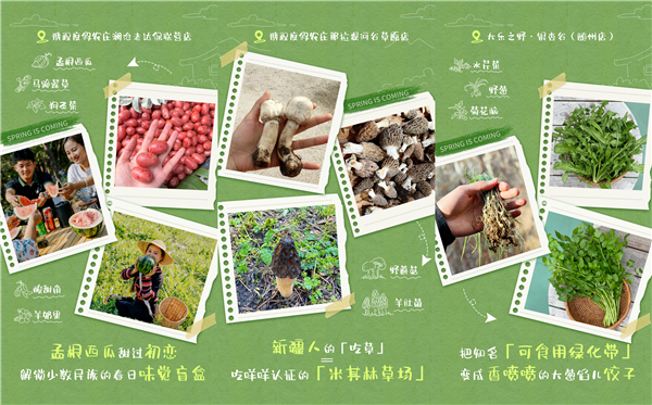 此外,新疆那拉提店的野蘑菇炖土鸡、随州银杏谷的大葱饺子等特色菜品,亦成为“打野人”的必点项目。携程数据显示,3月以来“农庄+时令采摘”关键词搜索量环比上涨50%,乡野踏青正从观光向深度体验转型。