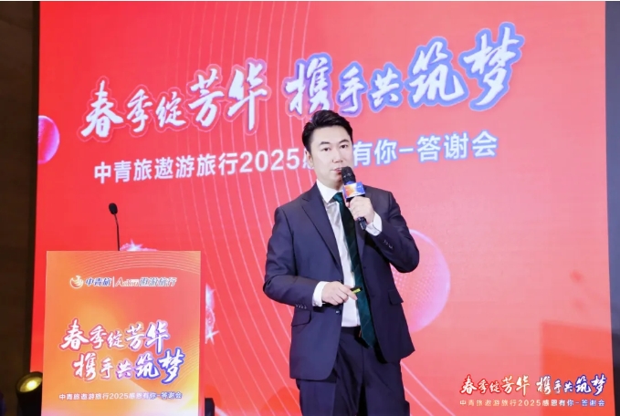 刘杰为本次盛会开场致辞。她全面总结了2024年中青旅遨游公司发展情况,并对2025年新举措、新发展进行了分享。