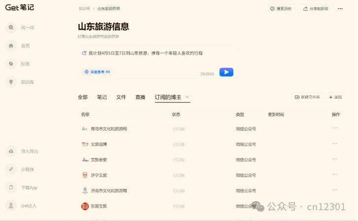 Get笔记是近来火爆的知识管理应用,上线了一个有意思的功能,可以订阅微信公众号作为知识库,通过接入的Deepseek利用知识库生成内容。