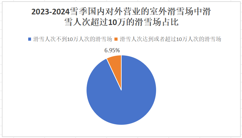 来自《2023-2024中国滑雪产业白皮书》数据显示,2023-2024雪季国内对外营业的室外滑雪场共计719家,其中滑雪人次达到或者超过10万人次的滑雪场为50家,占比仅为6.95%。而这50家滑雪人次达到或者超过10万人次的滑雪场中,滑雪人次能够突破50万+的一只手就可以数的过来。