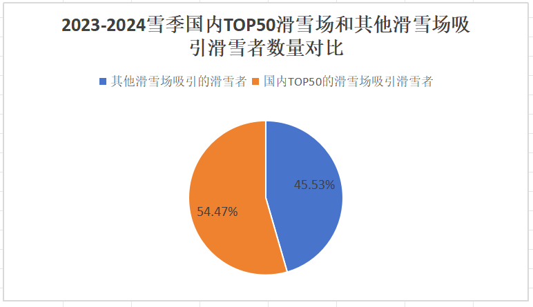 滑雪场是一个市场集中度非常高的产业。2023-2024雪季,国内TOP50的滑雪场共计吸引滑雪者1264万人次,占据当年国内滑雪总人次的54.47%。