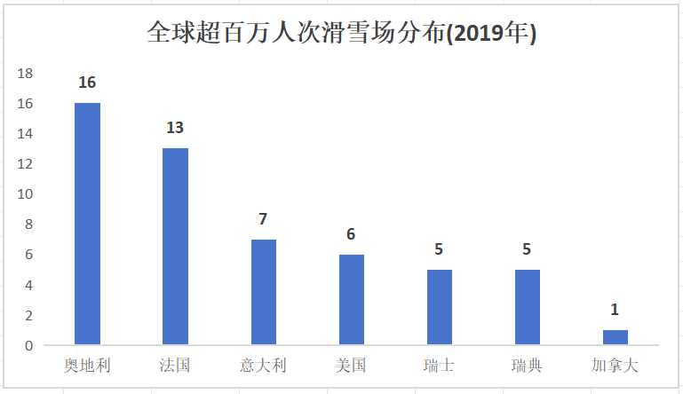 劳伦特·凡奈特每年发布的《全球滑雪市场报告》显示,截止2019年,全球滑雪场超过5000家,其中达成百万人次的滑雪场共计53家。