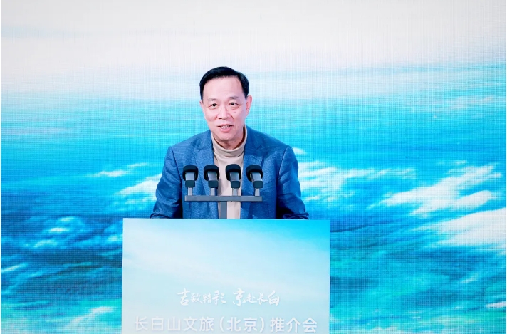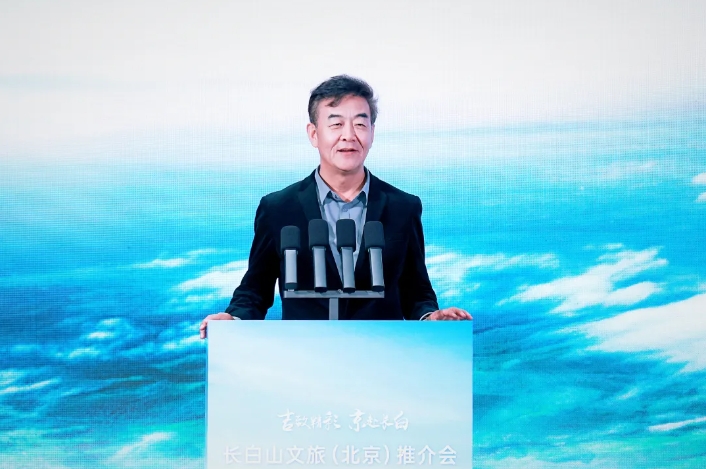 徐鹏在致辞中介绍,长白山始终是北京的世外桃源。依托长白山自然风光,生动诠释中华文明“天人合一、万物并育”的生态文化,匠心打造春可踏雪赏花、夏宜避暑度假、秋观层林尽染、冬游雪域王国的“山、水、林、泽、雪”系列生态旅游产品。