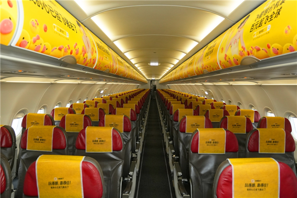“飞猪号”机舱内部也做了特别布置,行李舱盖板、小桌板、座椅头巾等印着“舒心出行”等主题内容。当天下午,浙江长龙航空还在萧山国际机场T3航站楼的值机柜台、登机口设置了飞猪主题展示。此外,4月24日、5月1日当天,乘坐浙江长龙航空国内航班的旅客还有机会在值机柜台打印限量版飞猪代言人登机牌。