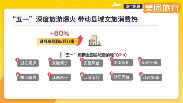 这些小众县城客流较小,花几百元住高星酒店成为现实。据美团旅行数据,今年“五一”假期,县城高星酒店预订量同比增长超80%。