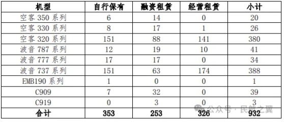 截至3月底,南航运营932架运输飞机,仅比国航少2架飞机,具体保有情况如下: