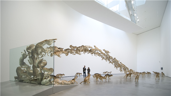 《撞墙》是蔡国强对文明冲突与融合的深刻隐喻:99 匹狼群组成的装置,以奔跑姿态直面透明屏障,象征人类突破认知边界的永恒渴望。携程会员可以近距离感受这件充满张力的作品,并在导览中聆听艺术家对跨文化对话的解读。蔡国强表示:"我是一颗来自故乡泉州的种子,在不同文化里生长。艺术远行,是为了让世界与我们彼此看见。"