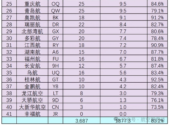 川航(84.5%客座率)与深航(83.2%)表现稳健,印证成都、深圳高活力航空市场支撑。