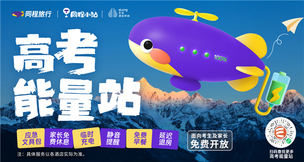 据同程小站相关负责人介绍,高考能量站主要基于同程旅行自身产业链优势,为考生和家长提供一些落地公益服务。如家长为避免考生奔波,会在考点附近安排酒店,据同程旅行平台数据,6月6日至8日的酒店热度较前一周末环比增长了60%。为保障考生休息,加入高考能量站的酒店会为考生安排静音楼层,同时提供免费早餐和延迟退房服务。考虑每年高考都会有考生临时忘带文具包等情况,同程旅行提前在高考能量站准备了应急文具包,有需要的考生可以就近免费拿取。此外,送考家长在考试等待期间还可以就近找到高考能量站休息、充电、寄存行李等。