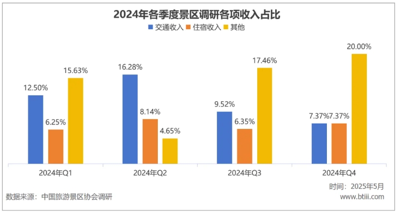 《报告》显示,2024年各季度,以上三项收入在调研样本景区总营收中的总占比30%左右。