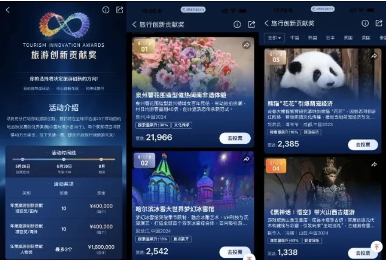 据悉,携程旅游创新基金评选范围覆盖全球23个国家和地区,最终将评选出20个带动目的地旅游发展的优秀案例(中国与海外各10个),每个案例将获得40万元的奖金,以及年度旅游创新贡献人物奖最高160万元,总奖金价值1千万元。目前,评选已进入公众投票冲刺阶段,全球旅行爱好者可通过携程参与这场创新盛宴,最终获奖名单将于7月初正式揭晓。