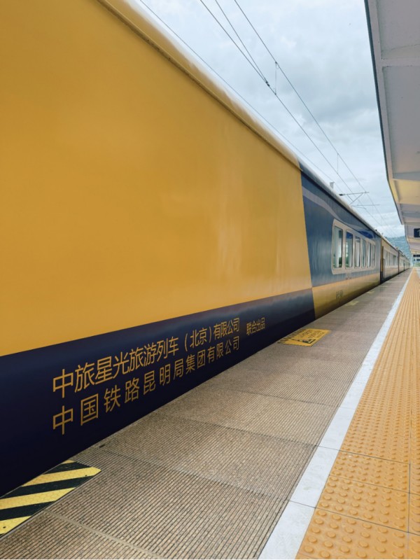 中老铁路作为国家“一带一路”、中老友谊标志性工程,是名副其实的国际黄金大通道,借助中老铁路的独特优势和魅力,中旅资产作为中国旅游集团新兴产业孵化平台,倾力打造的“星光·澜湄号”中老铁路跨境旅游列车的开行,通过旅游和交通的深度融合,打造“旅游+铁路”“旅游+文化”新产品、新服务、新业态,积极展示“一带一路”移动文化长廊。