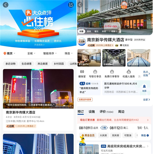美团旅行数据显示,截至8月7日,2025年暑期南京五星酒店预订增速同比上涨近20%。仅7月5日至6日的苏超南京主场比赛期间,苏超已带动河西地区入住间夜同比增长近30%,南京奥体中心体育场周边3公里内酒店成观赛游客热选。距离南京奥体中心体育场仅2公里的“南京新华传媒大酒店”间夜量同比增长111%。来自上海的游客周女士表示,“看完苏超,走回到南京新华传媒大酒店的距离非常近,很适合观赛游客。在酒店里还能吃到‘老南京糖醋仔排’‘石城鸭血粉丝汤’等特色菜。”