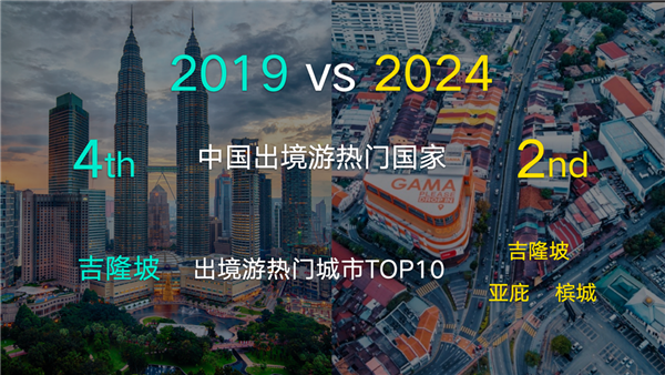 坐拥多民族文化碰撞造就的独特风情、种类繁多的美食、丰富的海岛资源,马来西亚一直是中国游客出境游首选目的地之一,自2023年底开始对华实行免签政策以来,热度更是稳步攀升。马蜂窝大数据显示,2024年马来西亚在中国游客出境热门国家中从2019年的第四升至第二,亚庇、吉隆坡、槟城三座城市跻身出境游热门城市前十。除了有计划的出游,免签便利也让马来西亚成为“说走就走”一族的目标。亚庇丹绒亚路海滩的“全球三大日落”之一景观在今年吸引大量“周末特种兵”游客,“亚庇一日游”、“亚庇必打卡美食”等相关攻略在马蜂窝站内的热度较上年同期增长超300%。