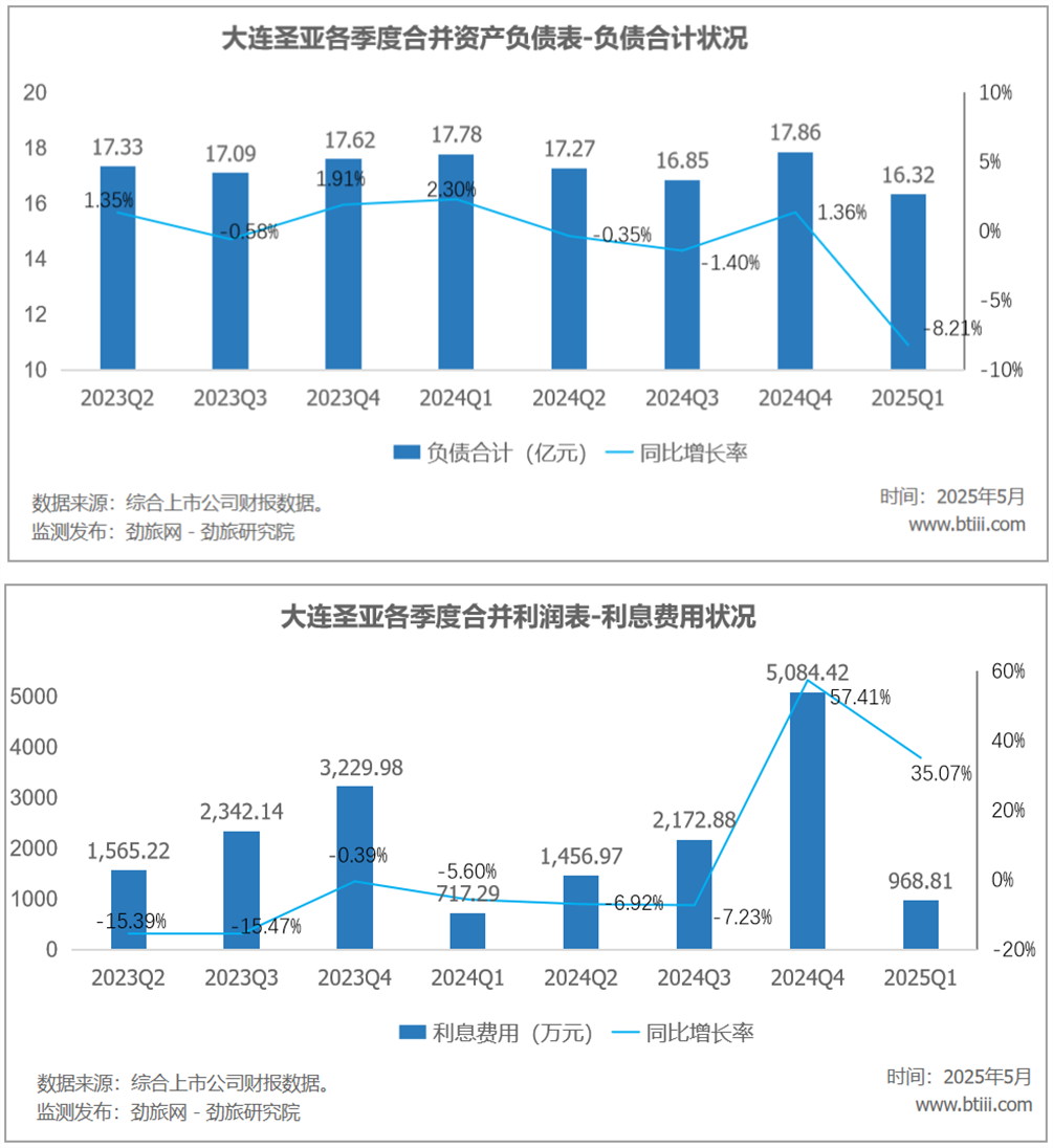 一季度,大连圣亚合并资产负债表-负债合计为16.32亿元,上年同期为17.78亿元,同比下降8.21%。合并利润表-利息费用为968.81万元,上年同期为717.29万元,同比增长35.07%。