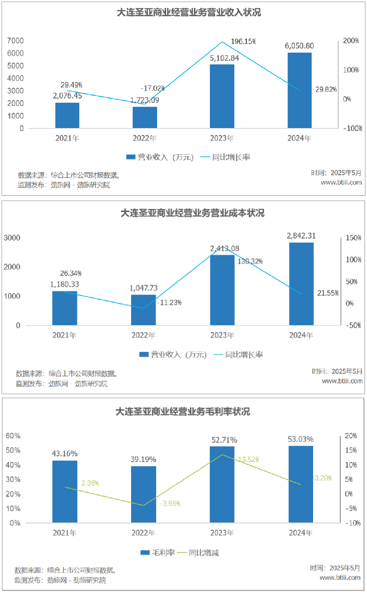 商业经营业务营业收入6050.80万元,上年同期为5102.84万元,同比增长29.82%。营业成本为2842.31万元,上年同期为2413.08万元,同比增长21.55%。毛利率53.03%,同比增长3.20%。