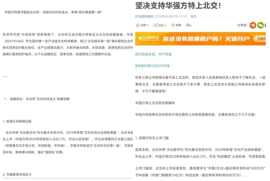 近期,热心的股民又开始为华强方特“规划”上市路径,建议其登录北交所,争做“文化娱乐第一股”。