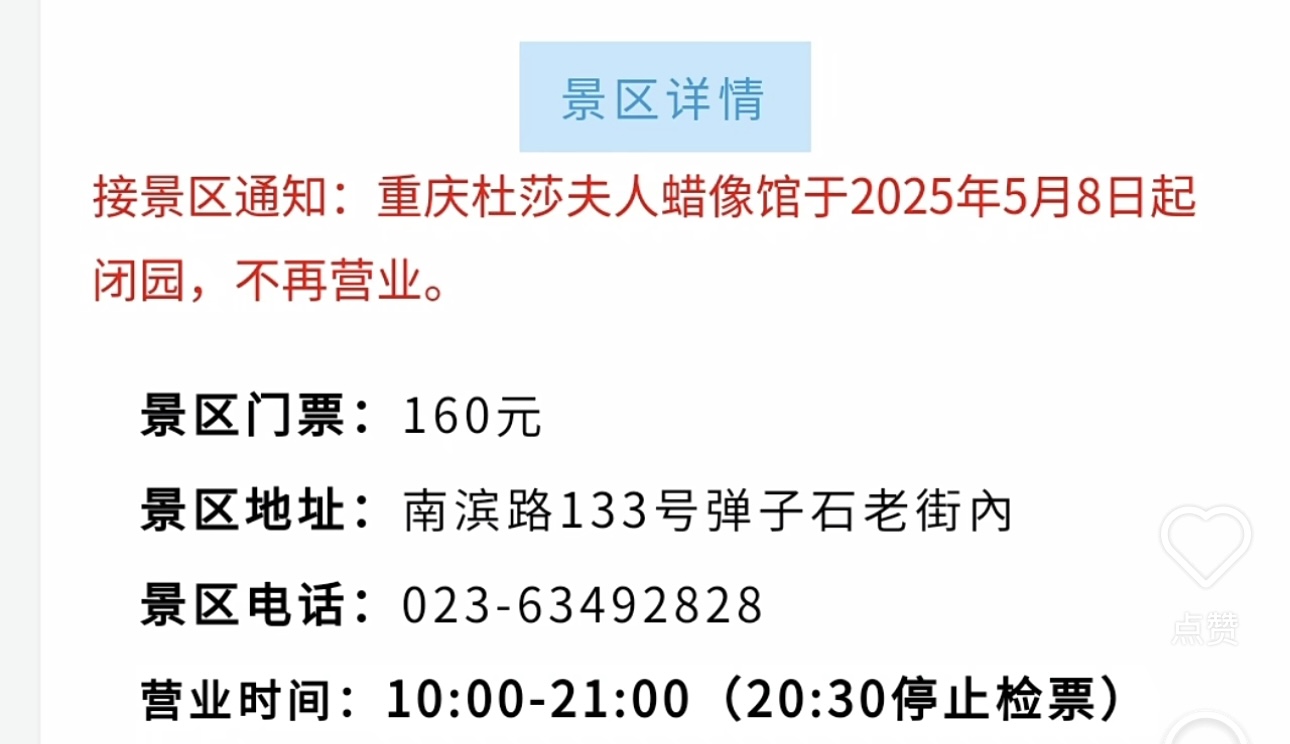 今年5月8日,重庆杜莎夫人蜡像馆也官宣倒闭。