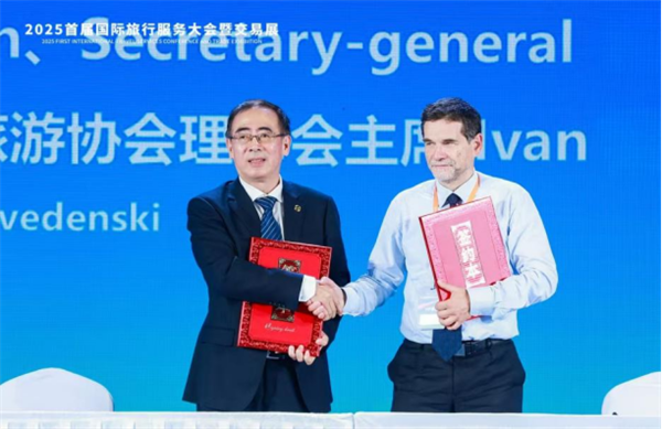 论坛期间举行了重要国际合作项目发布仪式。韩国旅行业协会会长李振锡、中国旅行社协会会长杜宪忠共同发布“中韩旅游业交流会”项目,标志着两国旅游业界将建立常态化合作机制。同时,中国旅行社协会与俄罗斯无国界旅游协会共同签署《上合组织成员国和对话伙伴国旅游产业企业和职业协会及其他从事旅游活动的组织合作协议》,中国旅行社协会、俄罗斯对外经济行业参与者联盟(俄中商会)签署合作谅解备忘录,中国国土经济学会国土交通委员会、中国旅行社协会铁道旅游分会、中国旅行社协会定制旅行分会共同签署战略合作协议,太保科技有限公司、中国康辉旅游集团有限公司签署战略合作协议。
